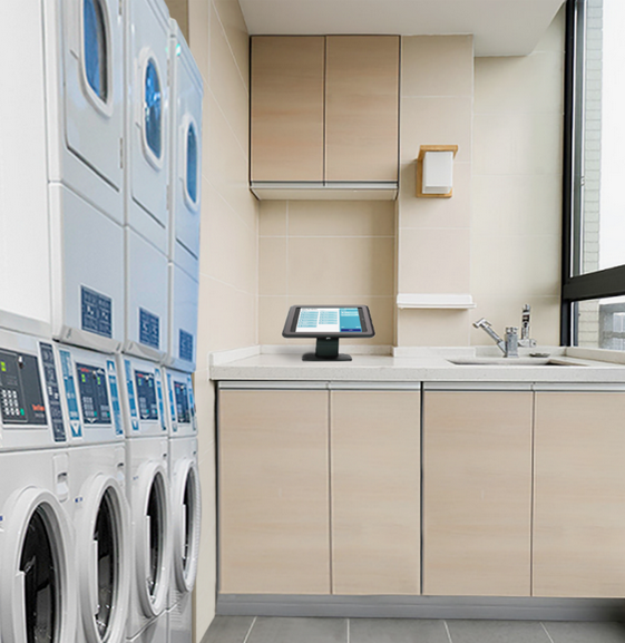We offer an optional stand-alone kiosk for shared laundry rooms that wish to provide a smart-phone alternative.